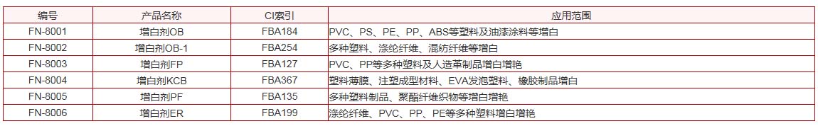 該類熒光增白劑,適用于造紙、洗滌劑、塑料、涂料、化纖等行業(yè)的增白增艷。
